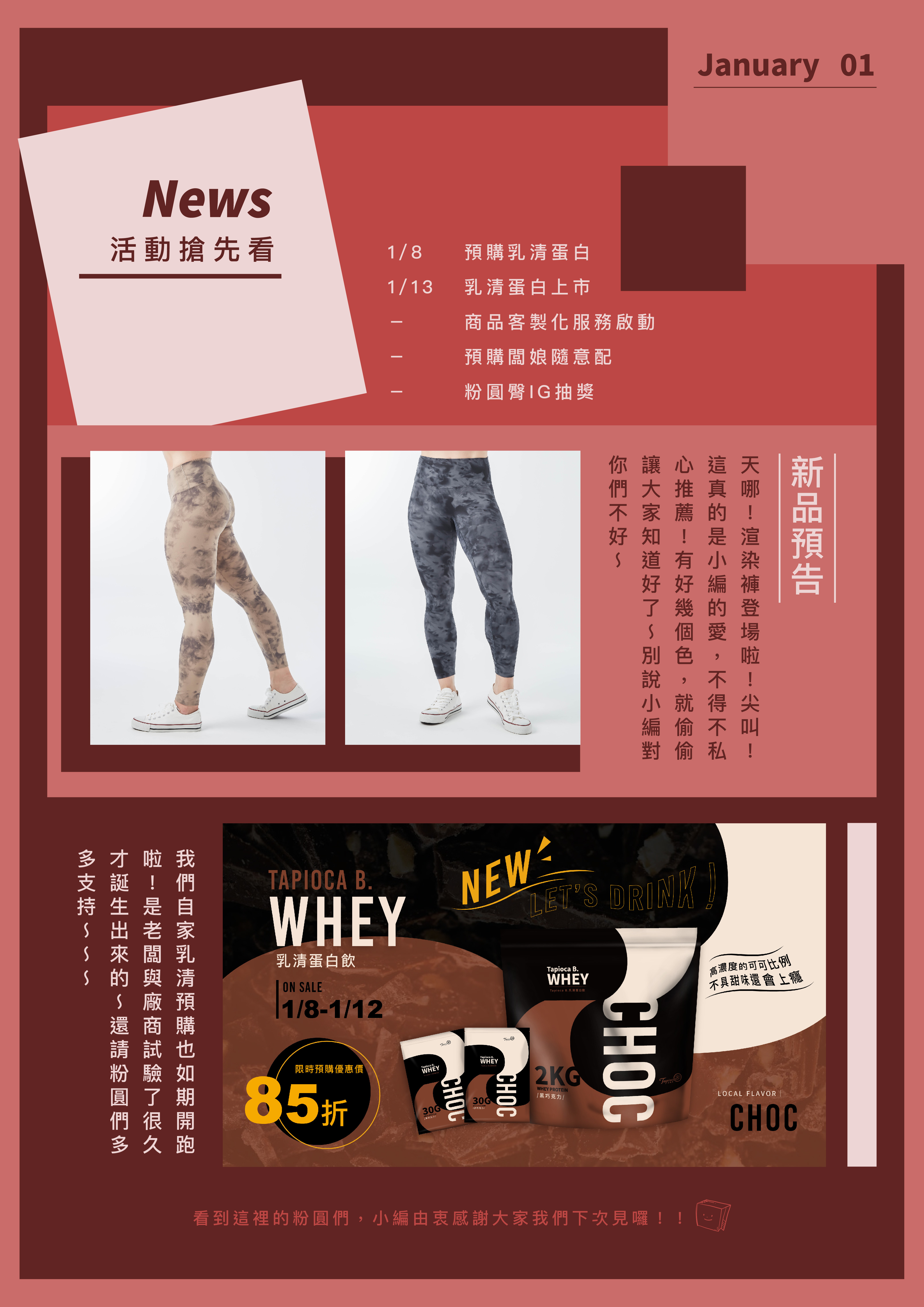 一直偷偷曝光給大家的渲染高腰健身粉圓褲真的要上市了!還有我們自己生產的乳清預購活動開跑啦,限時優惠價不等人~趕快買起來!
