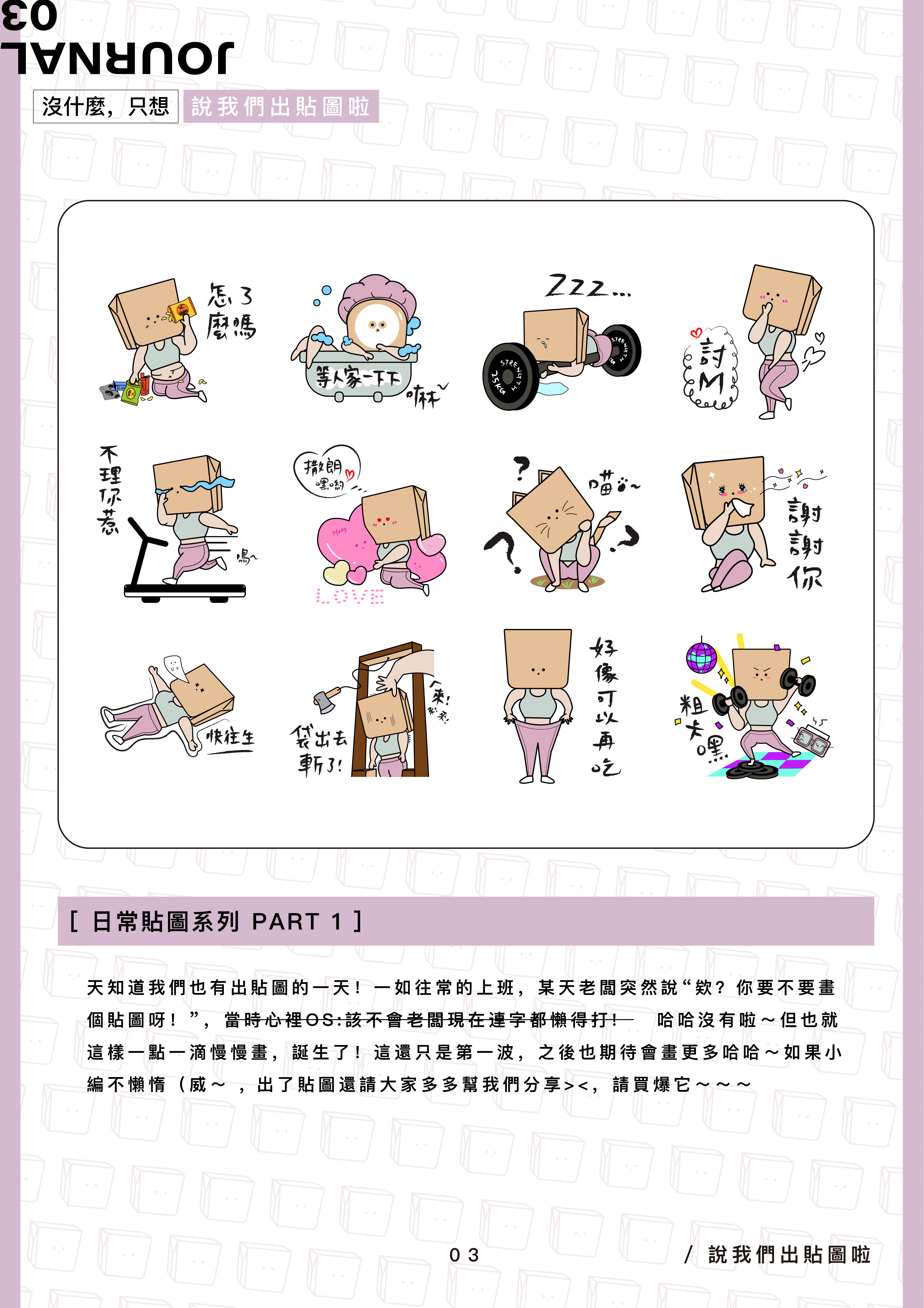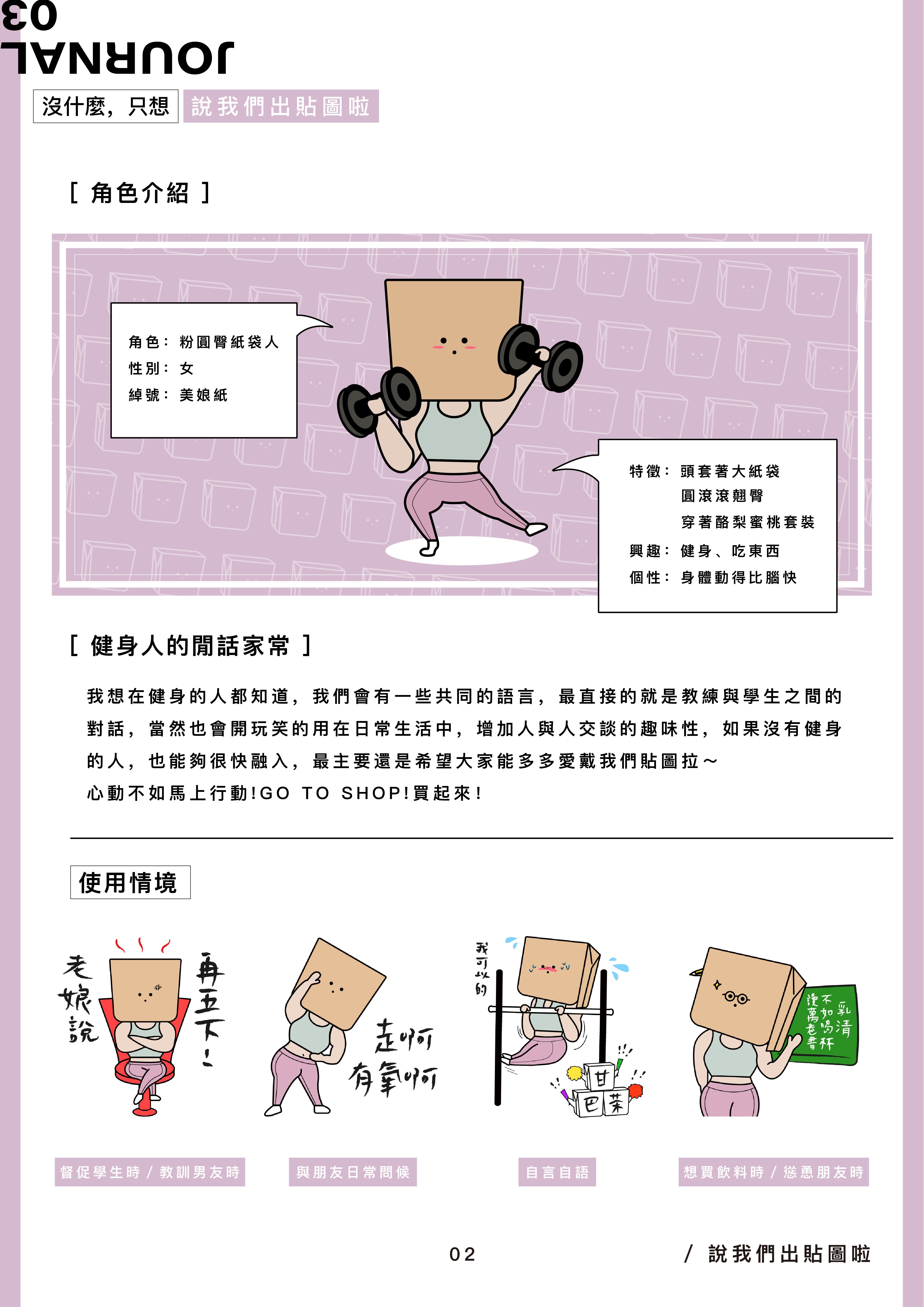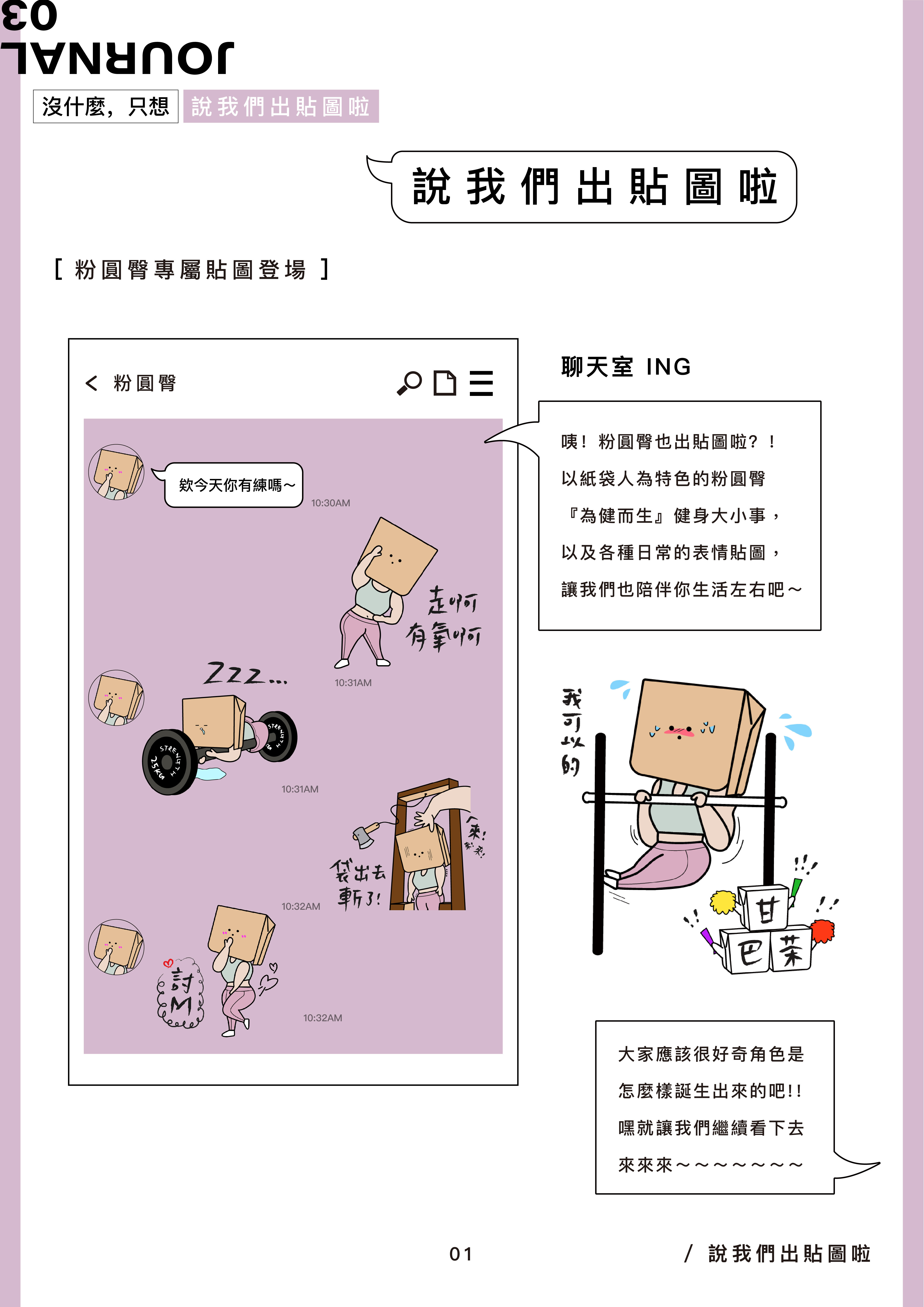 以紙袋人為特色的粉圓臀,「為健而身」是我們的宗旨,藉由紙袋人來傳達《健身人的閒話家常》以及《各種日常貼圖》系列,讓我們也陪伴你生活左右吧!