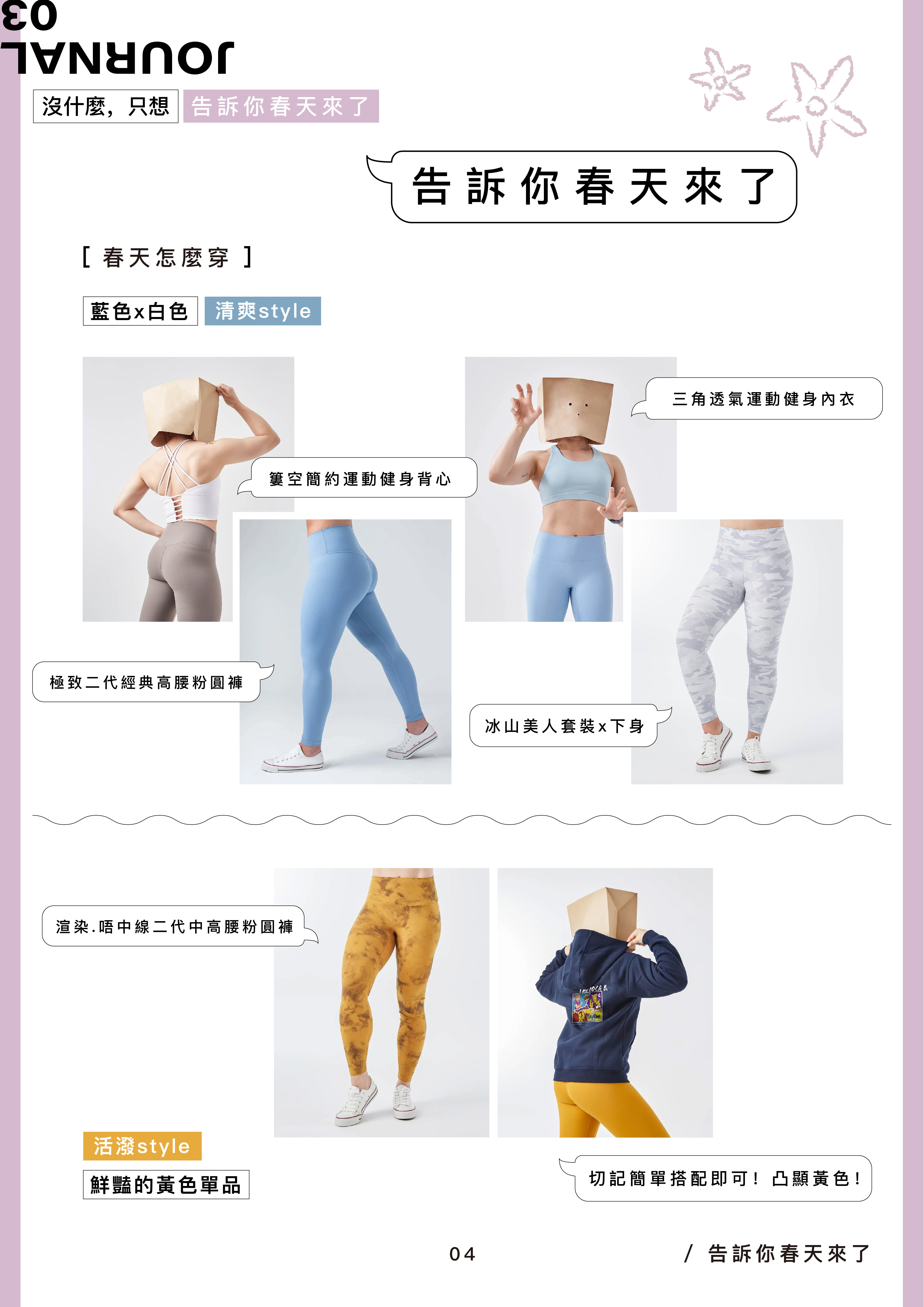 春季來到~讓我們看看怎麼搭配像是「藍、白、黃色」等清爽大方的顏色,在健身或運動時也能穿的很春天又好看!