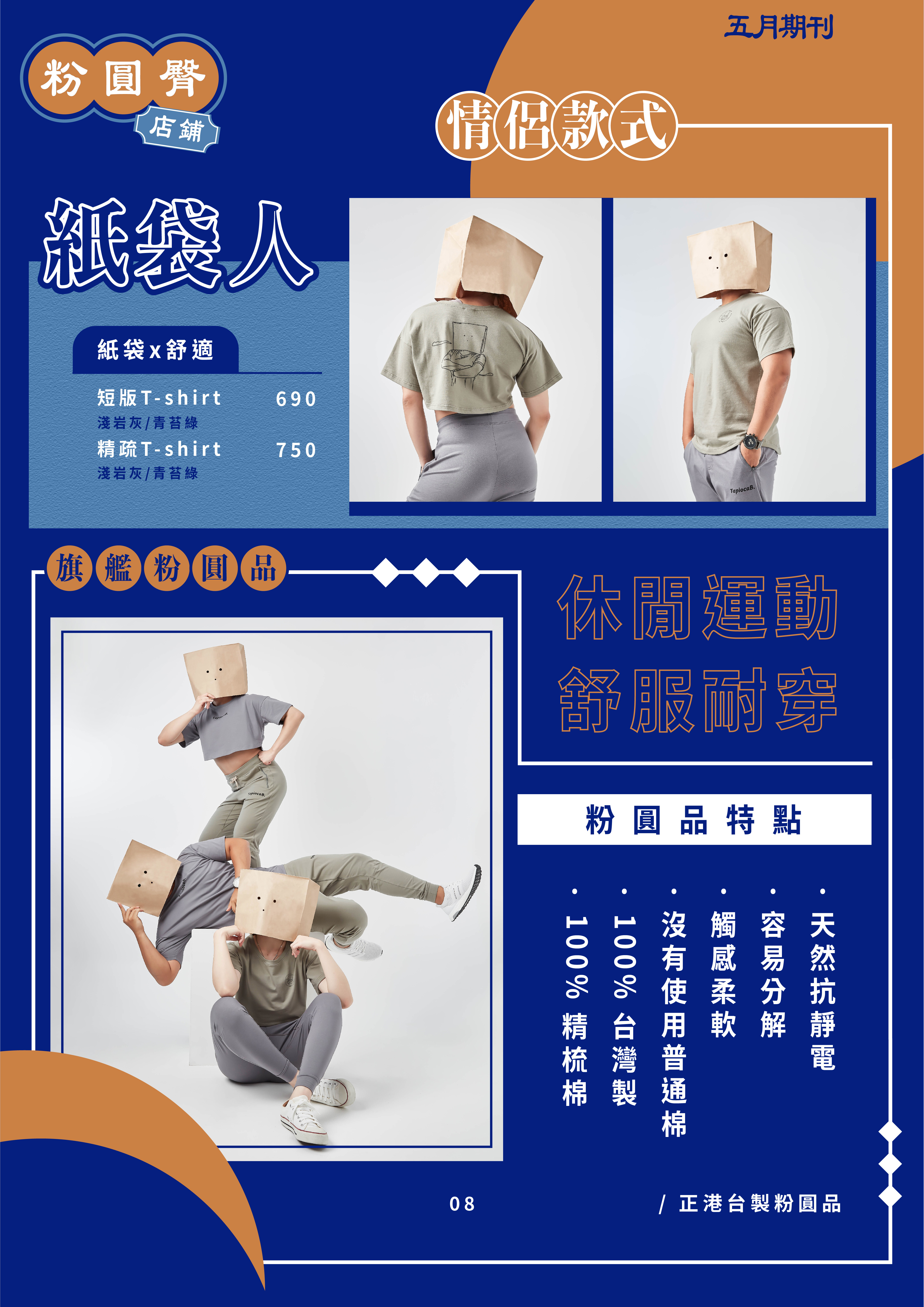 說到正港台製當然是我們「旗艦粉圓品系列」的商品!這次推出Couple情侶套裝、姐妹裝都可穿,有長、短版T-shirt、男女皆可穿的棉褲,休閒運動的服飾穿來自在「使用100%精梳棉、觸感柔軟、容易分解、天然抗靜電」等五大特點,印上我們紙袋人圖案、英文T兩種款式可做挑選哦~