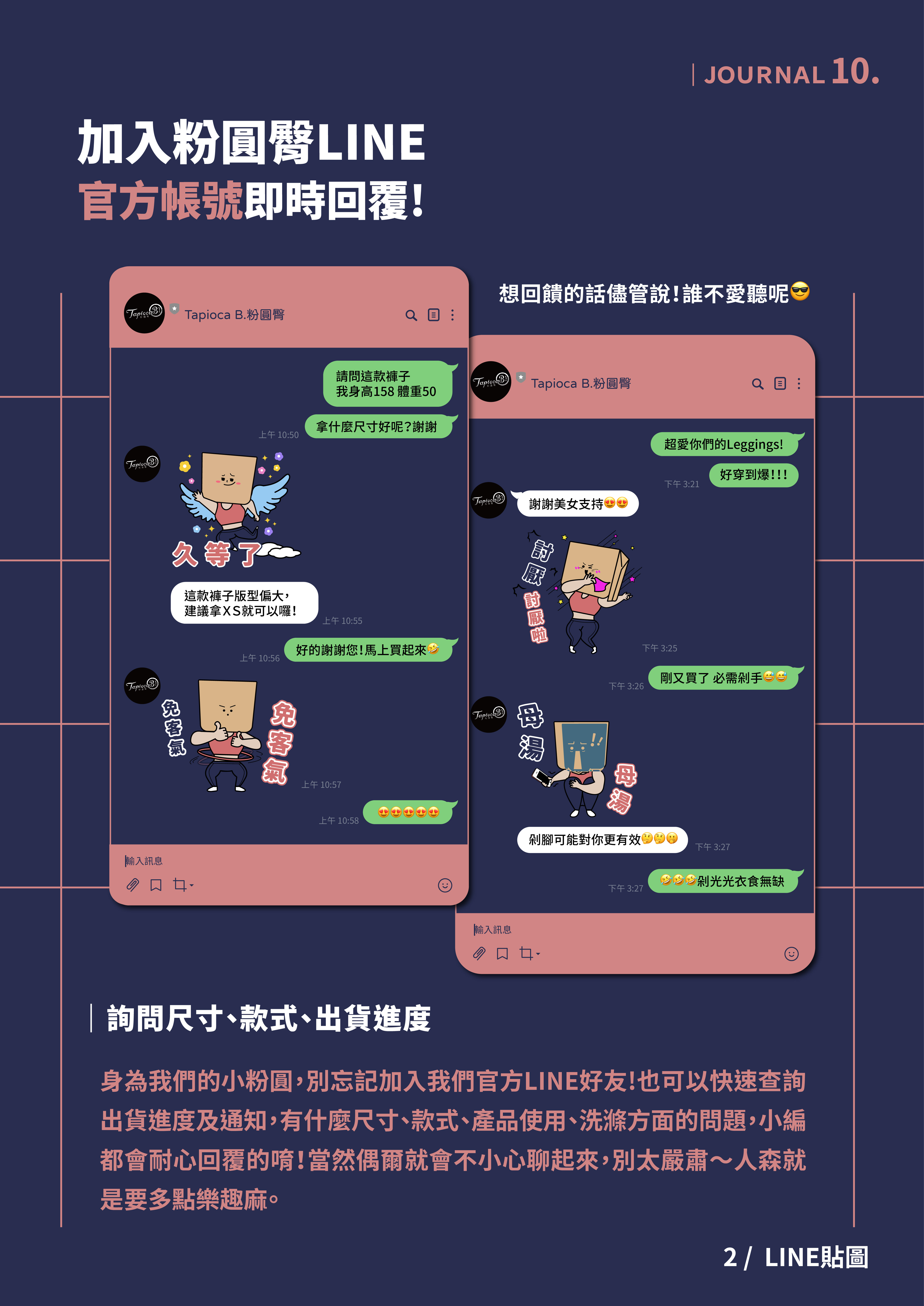 第二彈推出的是「日常用語篇」,除了健身、訓練外,小編也是要在公司出貨滴~每當有人詢問:緊身褲推薦或運動內衣推薦,小編即可透過LINE官方系統,最親切與最快速的回覆各位唷~