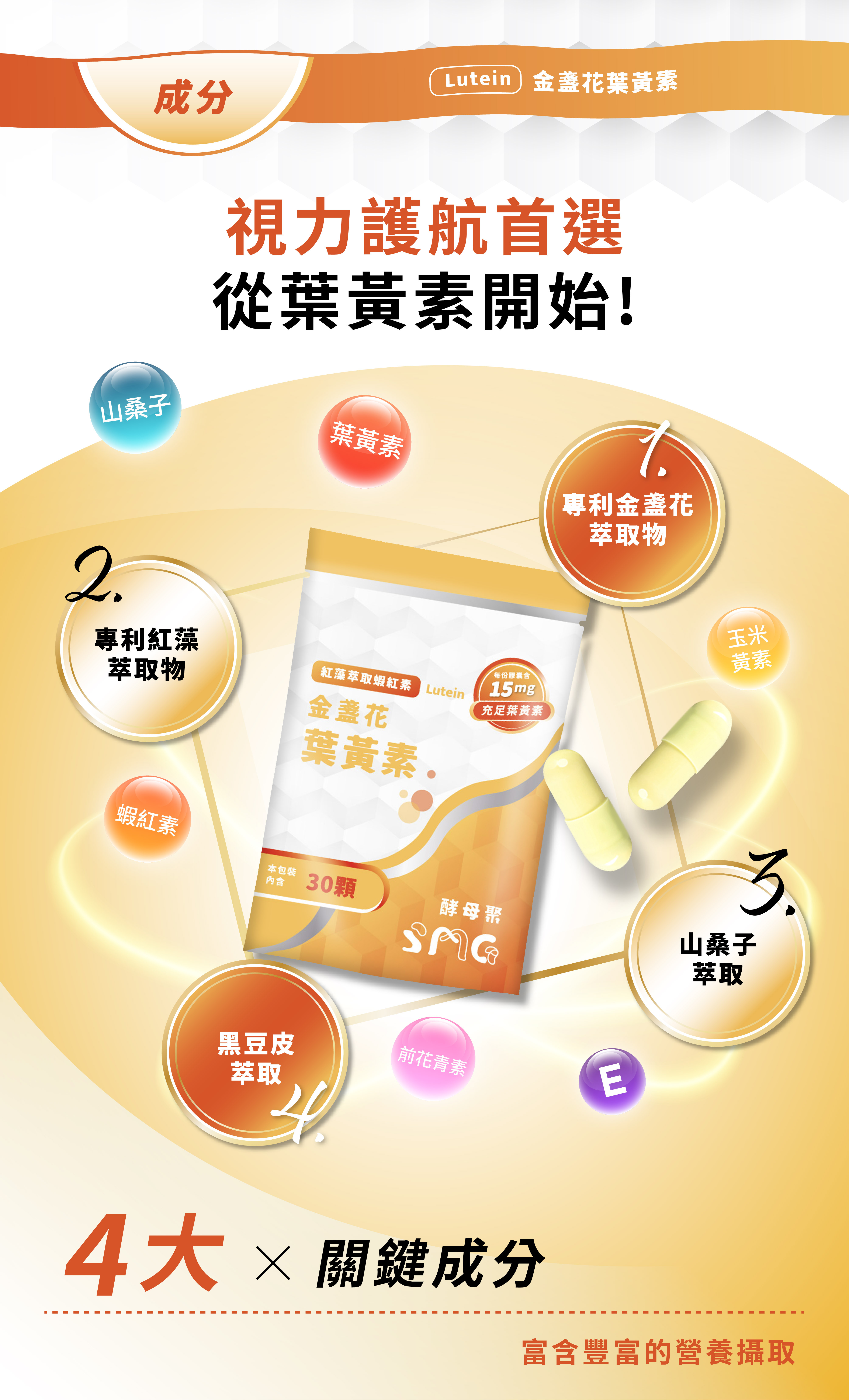 ◎4大關鍵成分(玉米黃素/山桑子萃取/蝦紅素/前花青素)