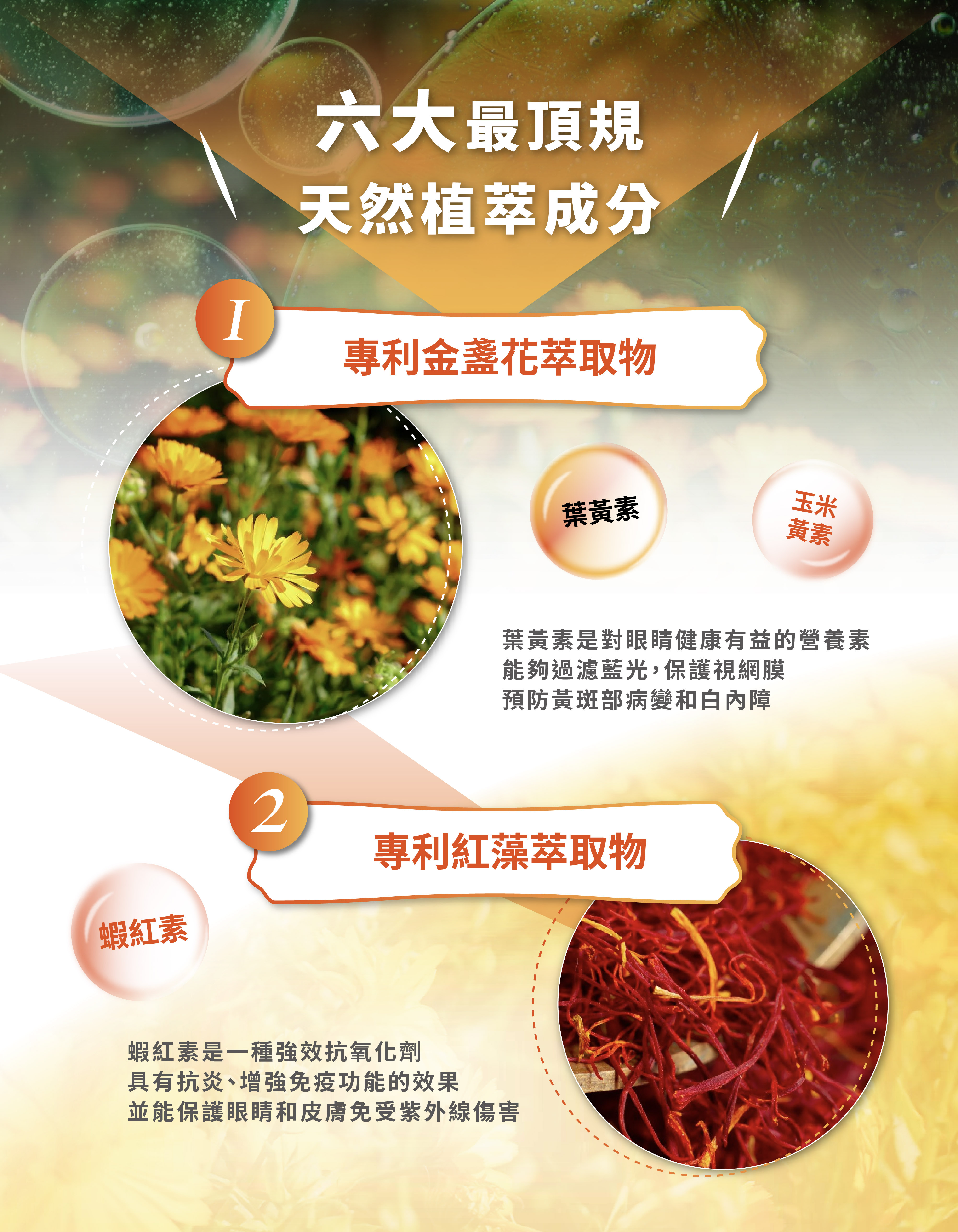 ✔美國專利金盞花萃取✔專利紅藻萃取物✔專利黑豆皮萃取物