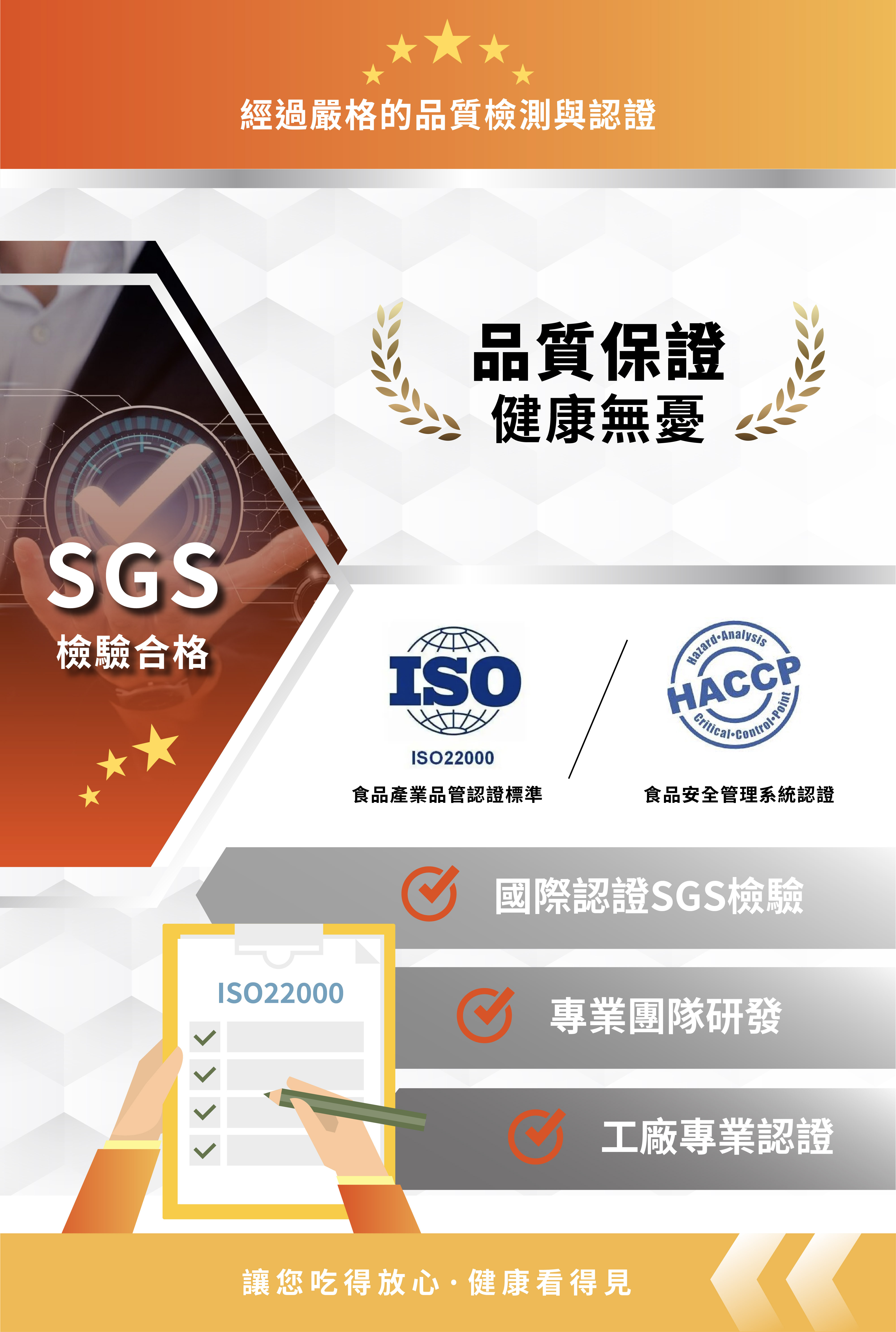 ※通過SGS驗證、ISO22000、HACCP、全面投保產品責任險※