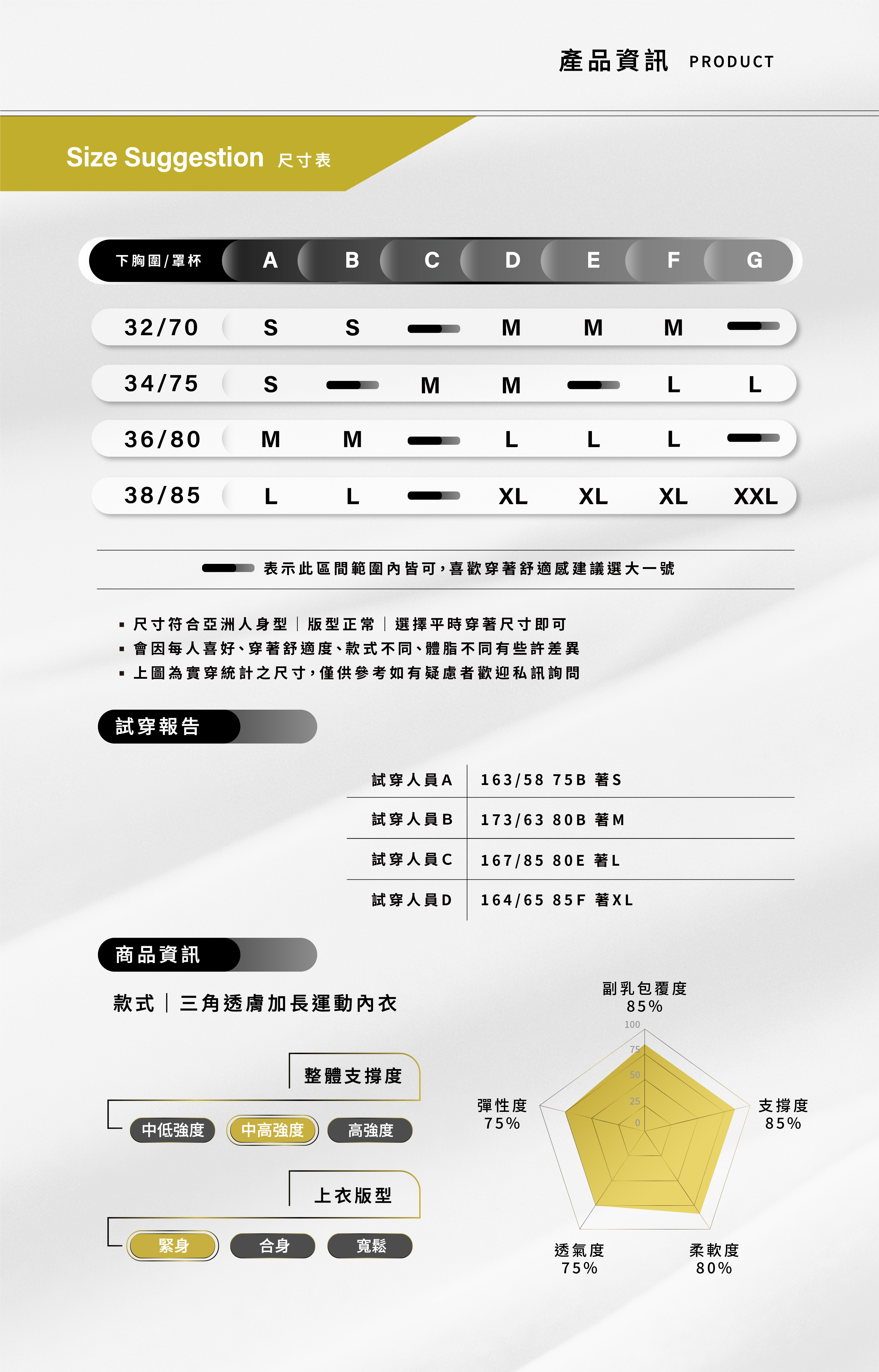 163cm / 58kg / 75B / 穿S號
